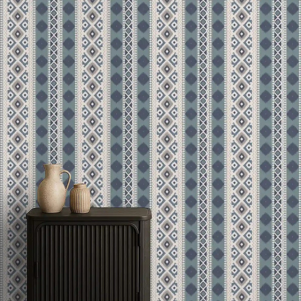Ikkat Geometric Wallpaper Roll in Light blue Color