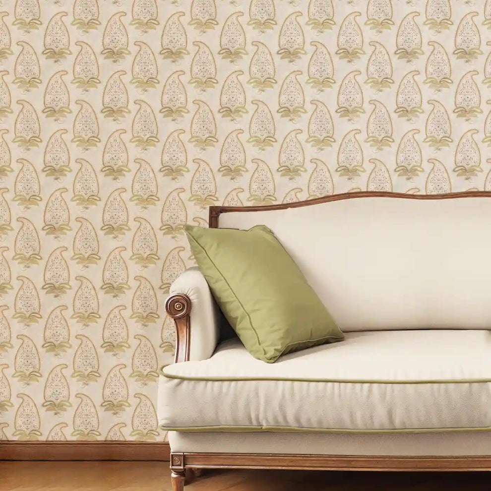 Indian Paisley Wallpaper Roll in Sepia Color