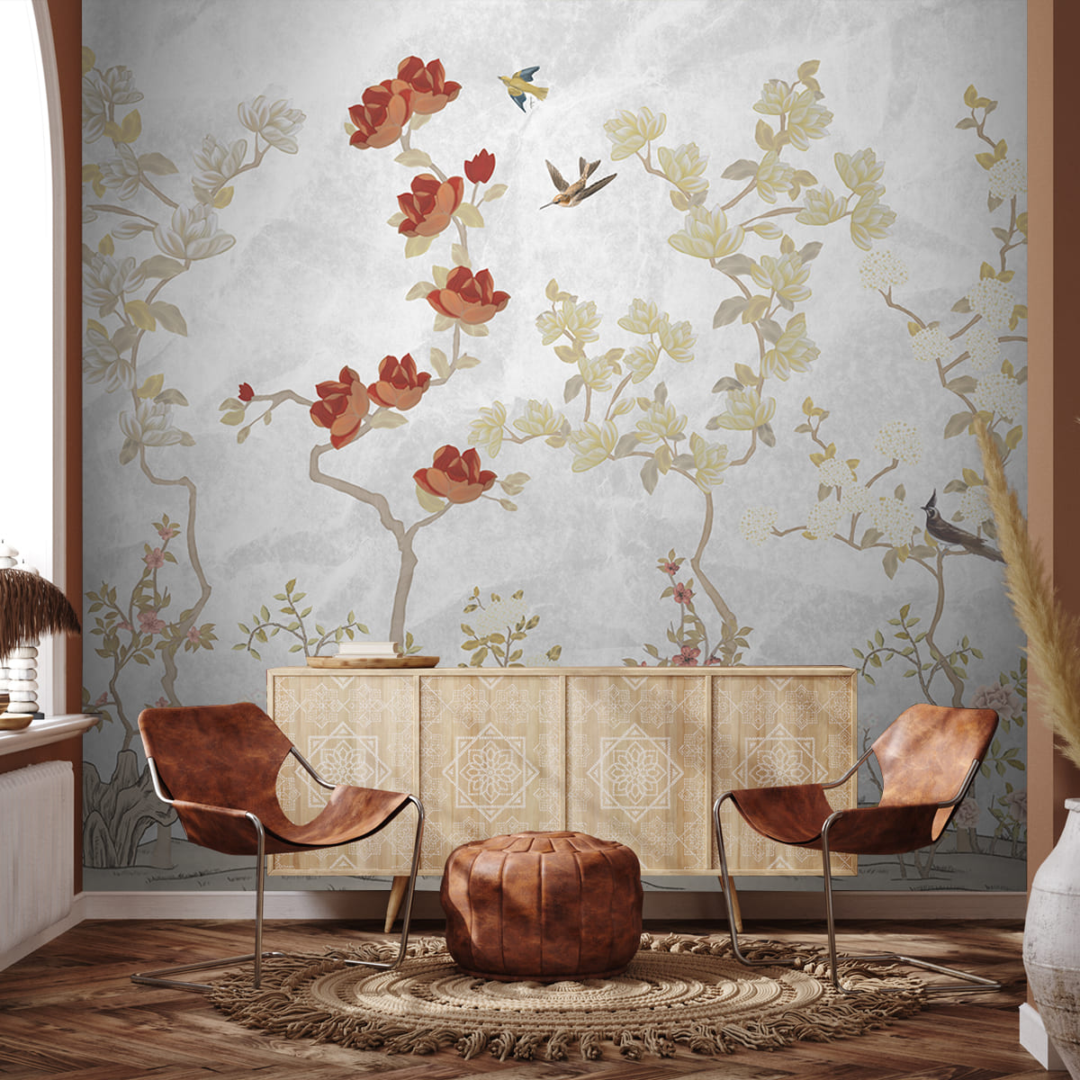 Pakhi Chinoiserie Design Customised Wallpaper for Rooms, Beige