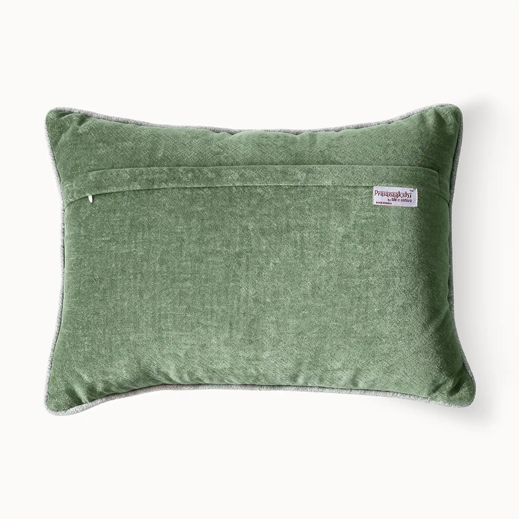 The Jewelled Parrot Cushion Cover in pistachio features two beautifully embroidered parrots on shiny fawn velvet. It's a piece with character Ñ detailed, colourful, and handcrafted with care.
