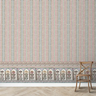 Kala Heritage Elegance: Intricate Indian Temple Art Wallpaper in Pink and Blue by Life n Colors. Royal feel to your space.