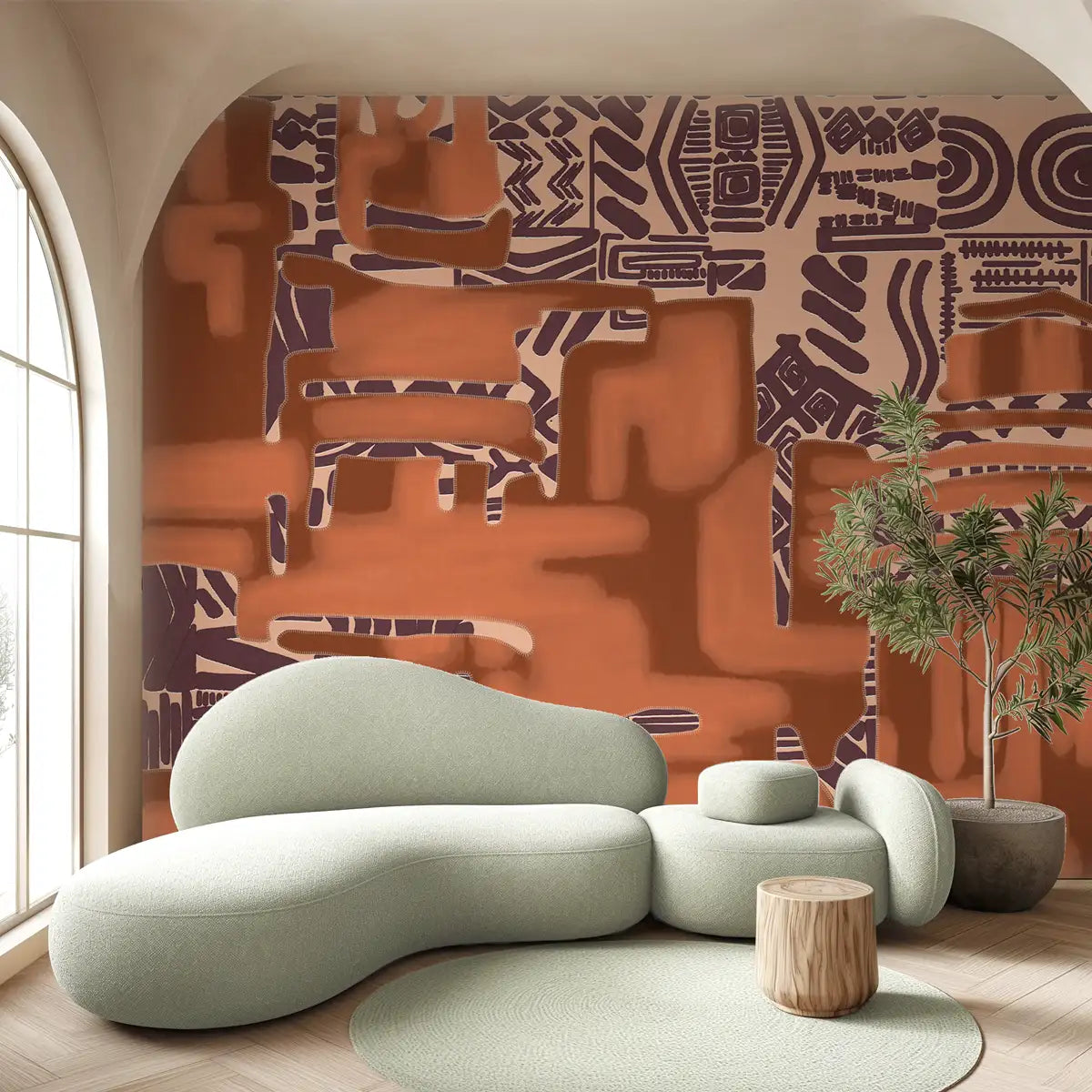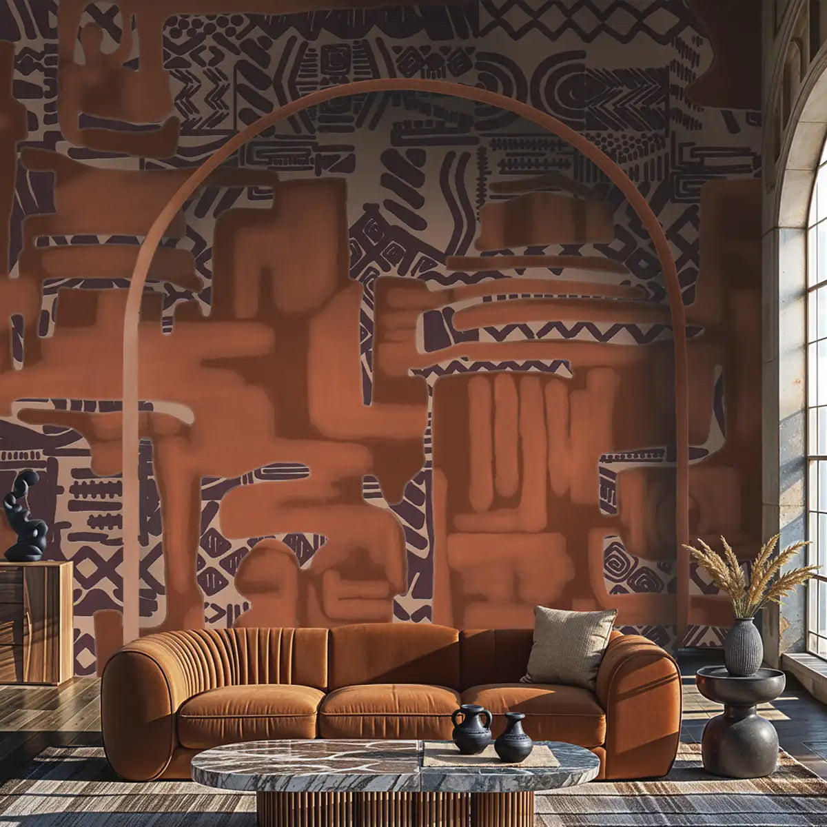 Kuba, Tribal Abstract Customised Wallpaper for walls, Rust