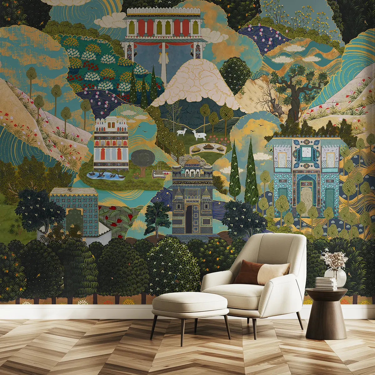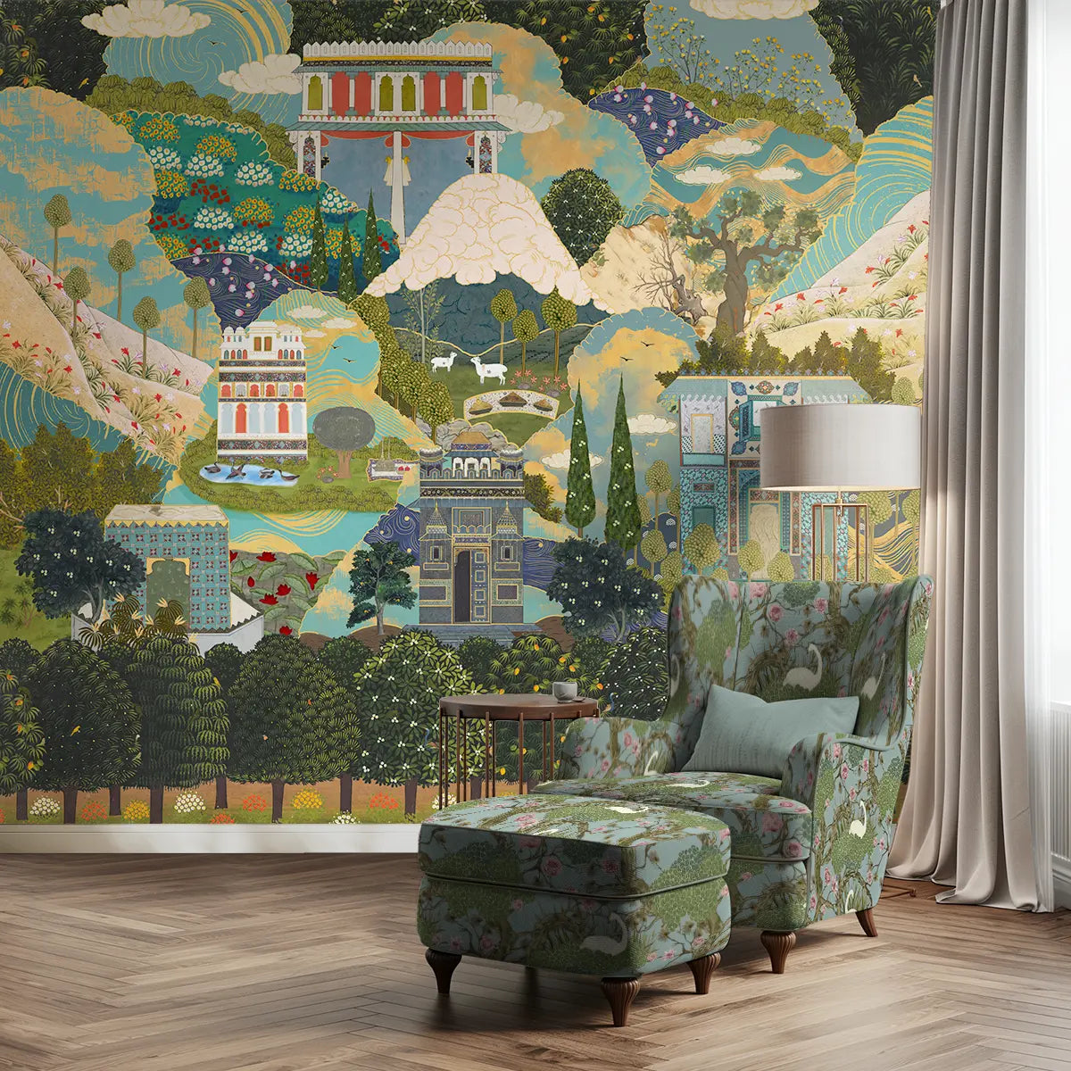 Lore of Persian Town, Customised Wallpaper for Walls Green & Blue