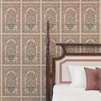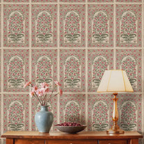 Elevate your room's elegance with the Madhur Jharoka Style Wallpaper, reminiscent of ancient Indian jharokha windows. Let the play of light and shadows cast by this exquisite design create a captivating ambiance that whispers tales of timeless beauty.