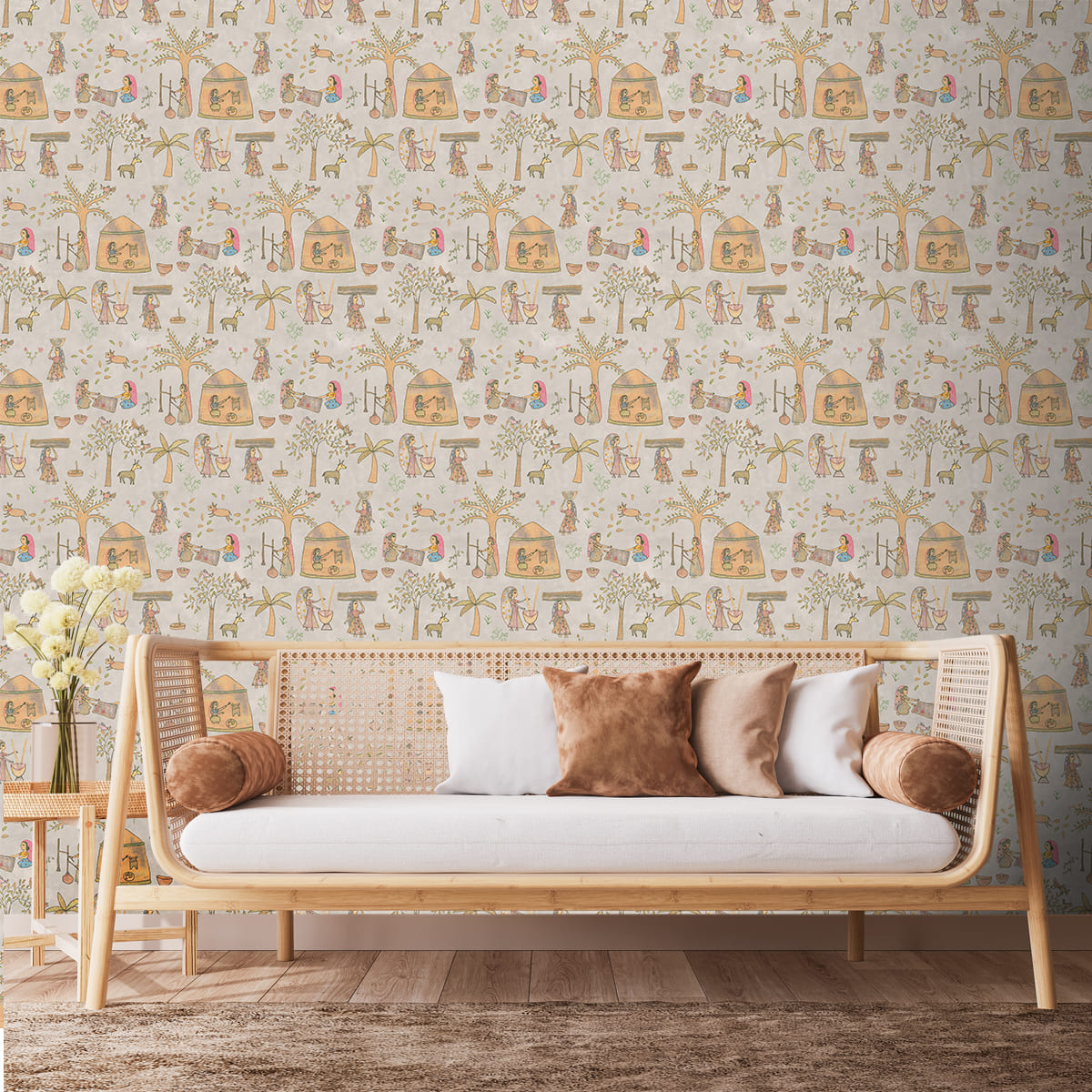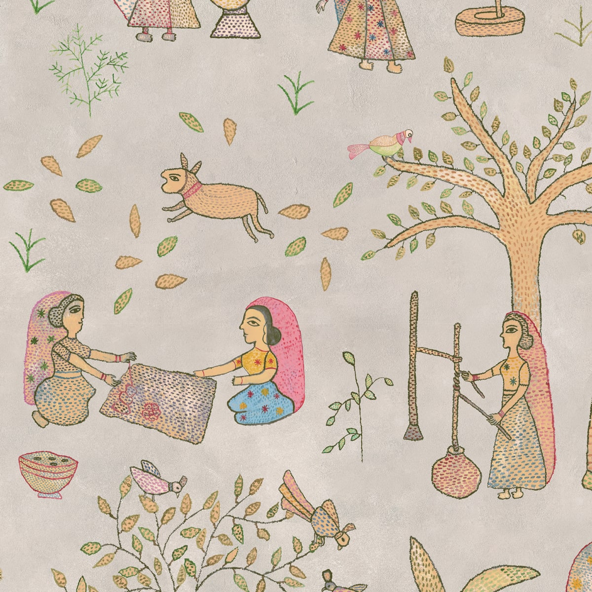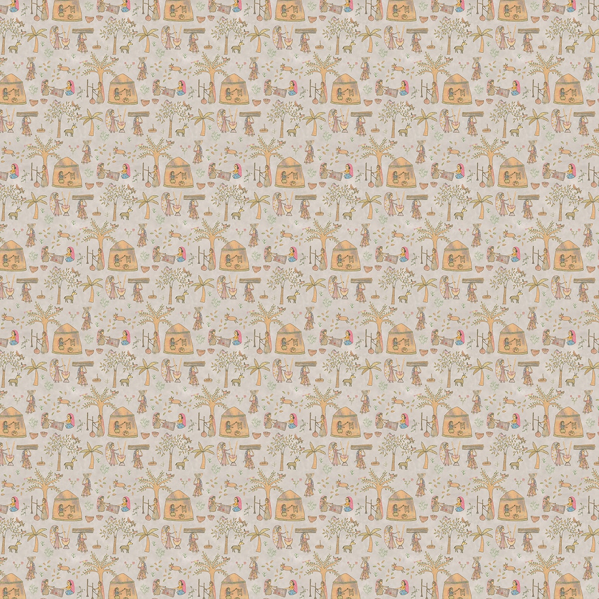 Mithila, Indian Sujani Art Wallpaper, Sand Color
