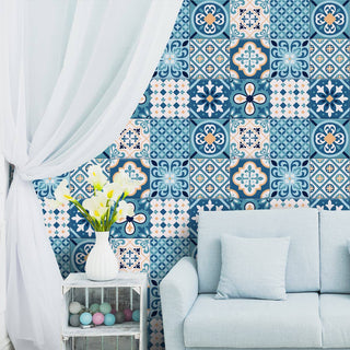Moroccan Blue Ceramic Tiles Inspired Wall Paper for Homes