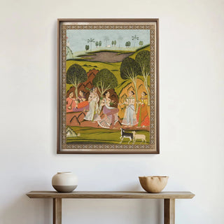 Musical Evening Vintage Frameless Indian Painting Wall Art Digital Print Poster, Large Wall Art for Living Room Decor. This comes without any frame. This is printed on sustainable material using water-based inks which provide vibrant and clear prints which are durable and long-lasting.