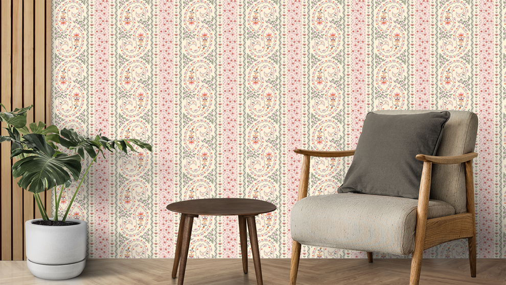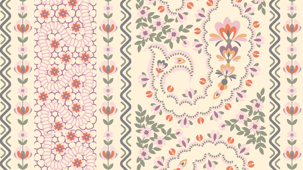 Naveli | Beige and pink | Clear & vibrant prints | Easy to maintain | Life n Colors | Made in India