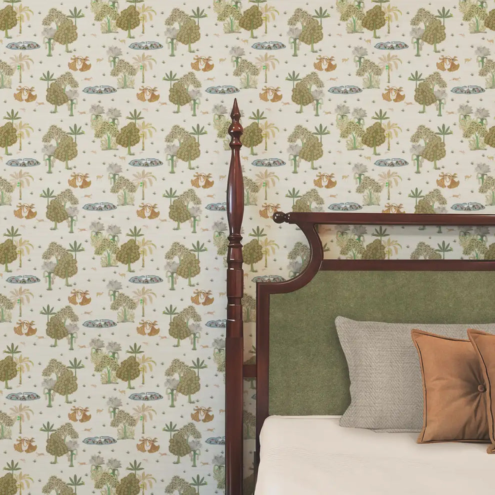 Nritya Indian Wallpaper Roll in Sandal Dust Color Bedroom