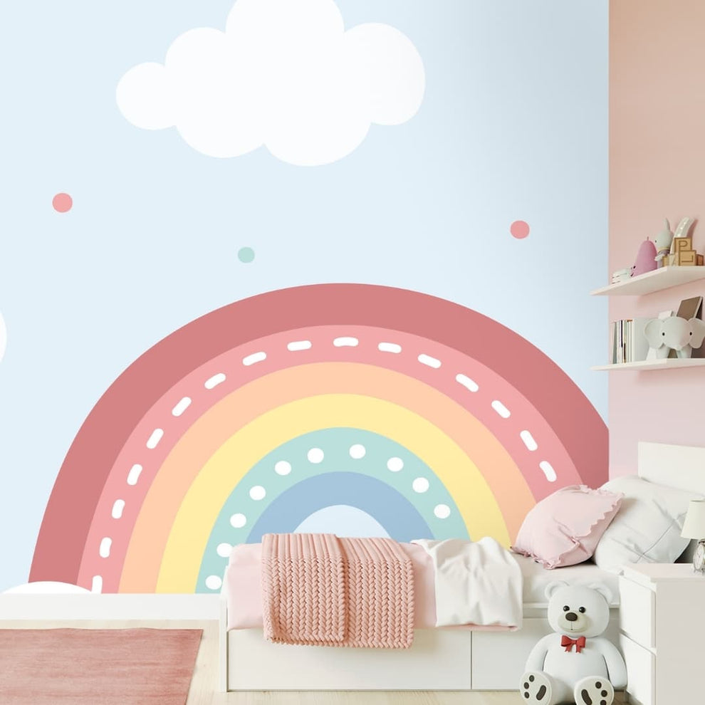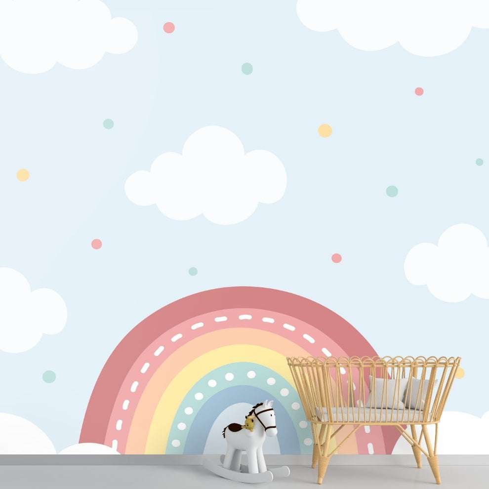 Pastel Rainbow Kids Nursery Room Wallpaper | Custom made | Clear & vibrant prints | Easy to maintain | Lifencolors | Made in India