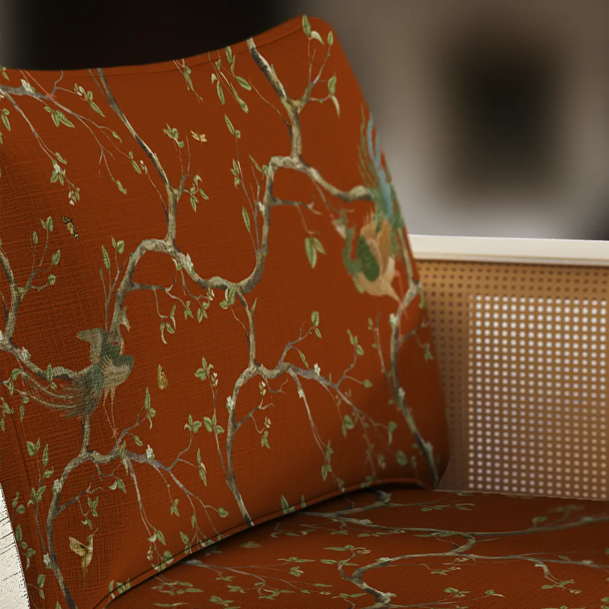 Product Details: Phoenix Chinoiserie Sofa and Chairs Upholstery Fabric Rust Color