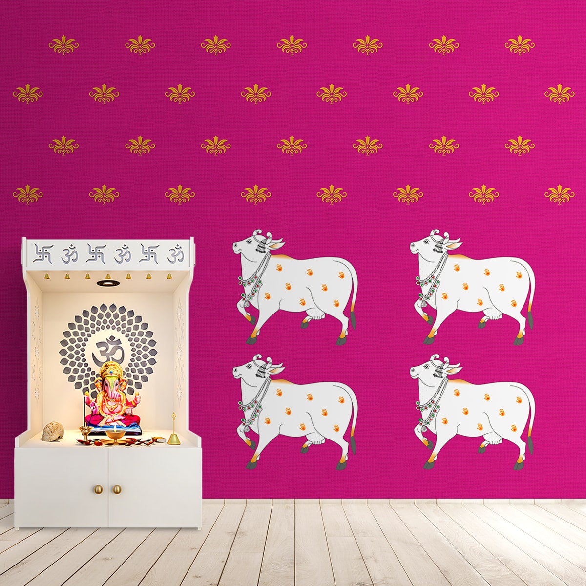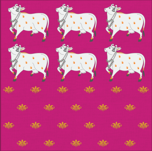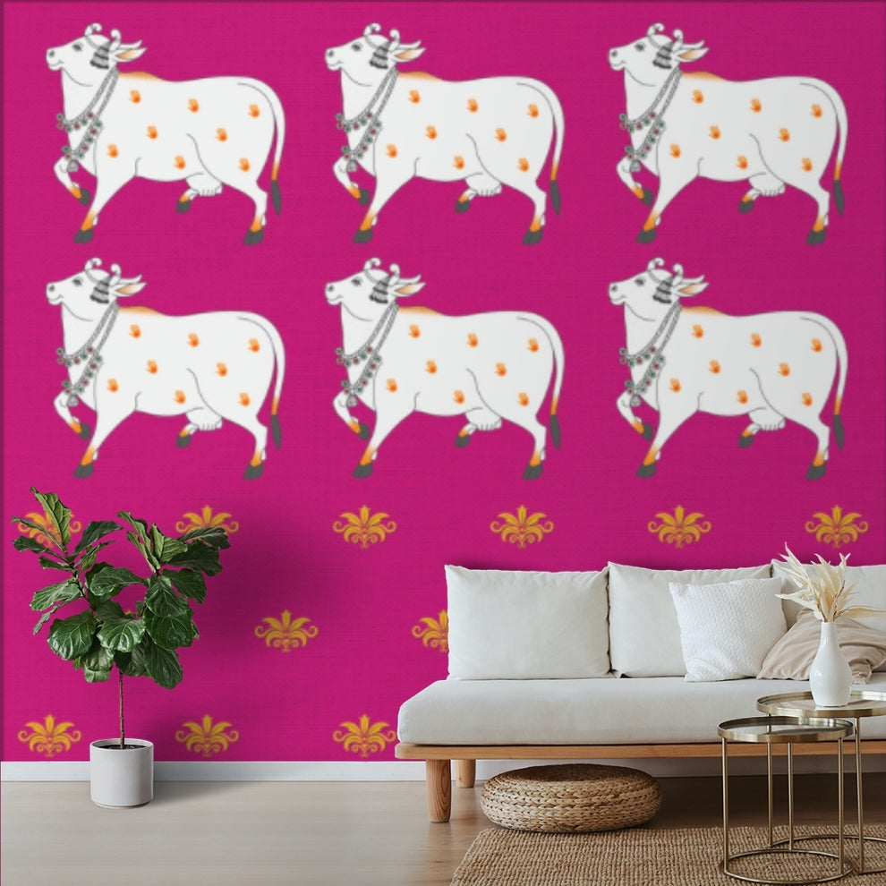 Pichwai Wallpaper, Pink & White, Cows & Lotus | Sustainable materials | Easy to Maintain | Made in India