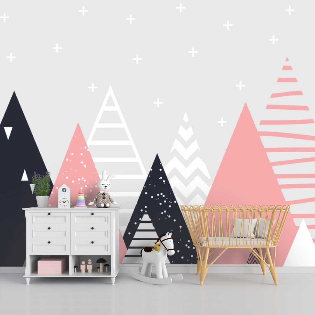 Pink, Black & White Mountains, Girls Room Wallpaper