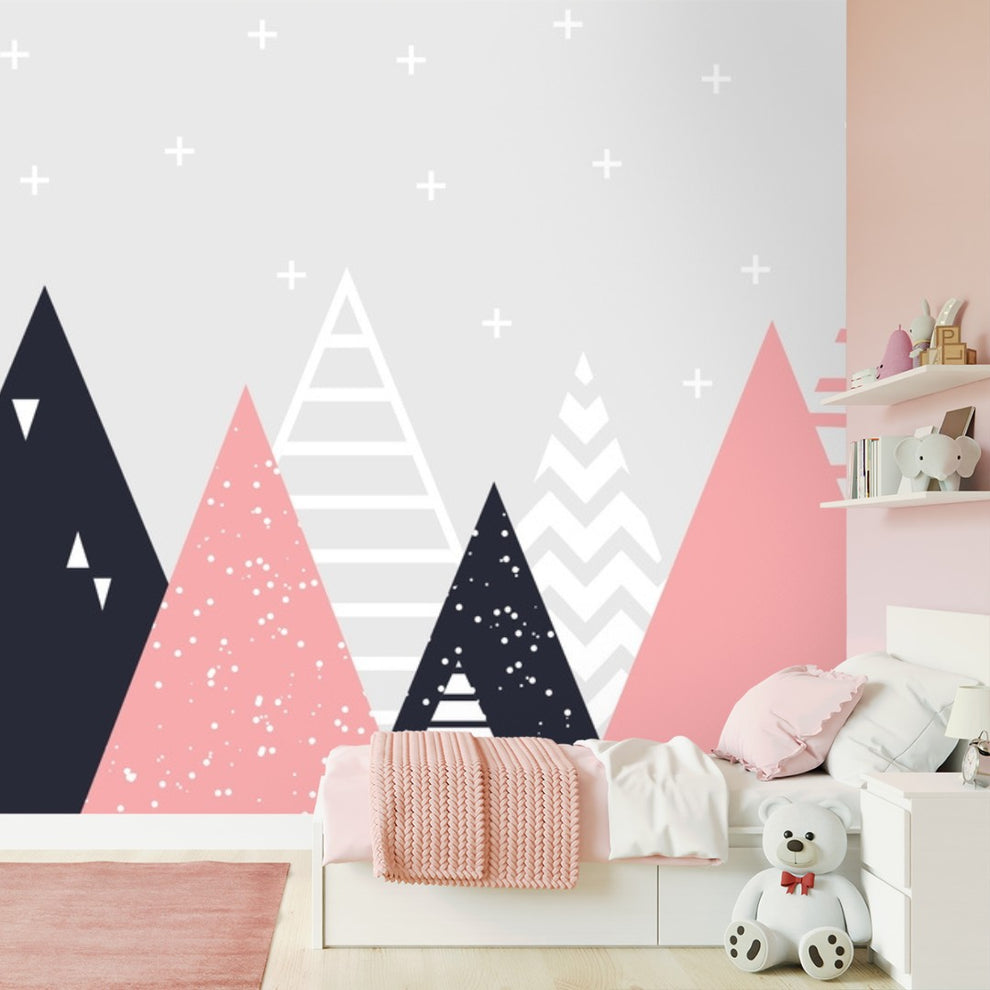 Pink, Black & White Mountains, Girls Room Wallpaper | Custom made | Clear & vibrant prints | Easy to maintain | Lifencolors | Made in India