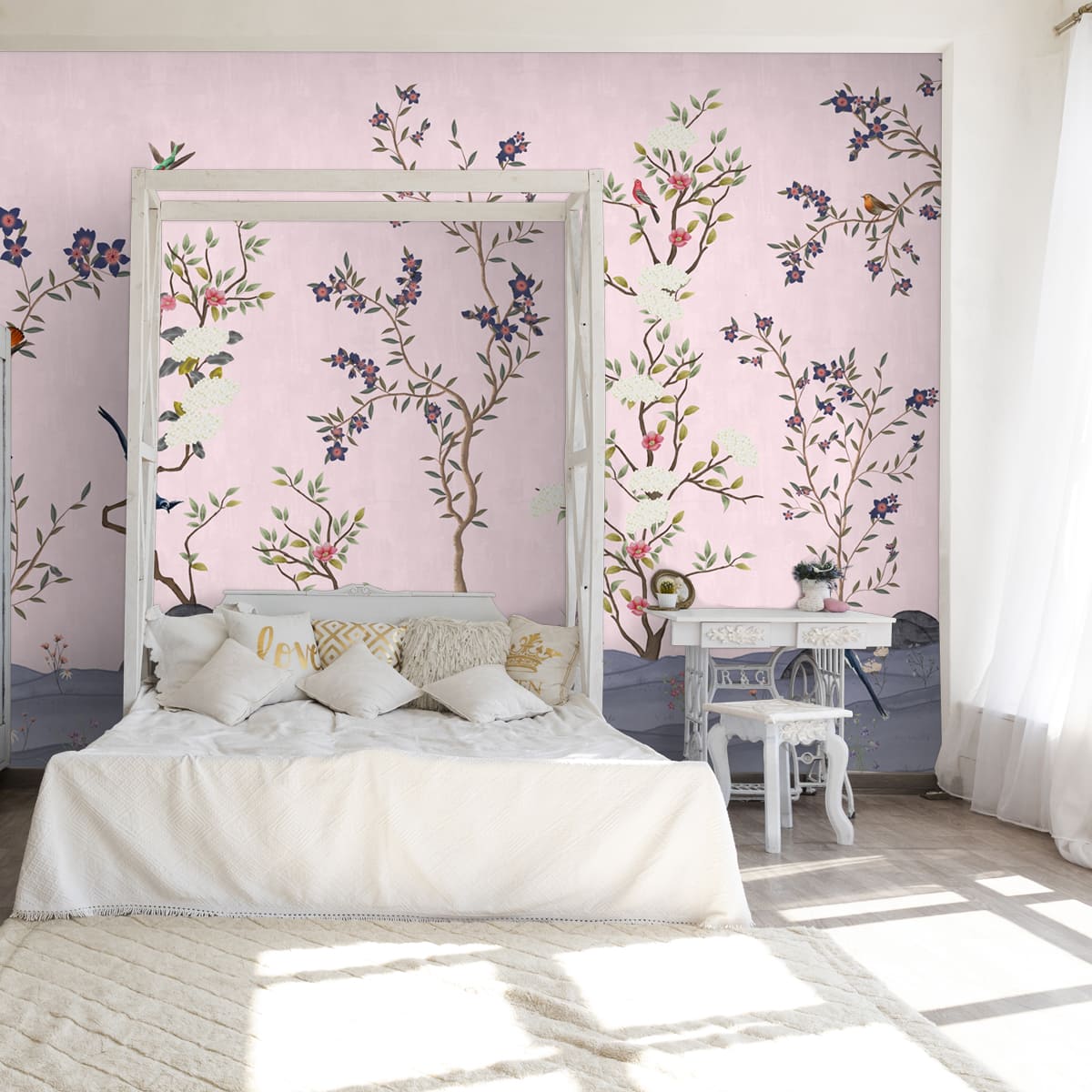 Pink Chinoiserie Pattern Wallpaper | Sustainable materials | Easy to Maintain | Made in India