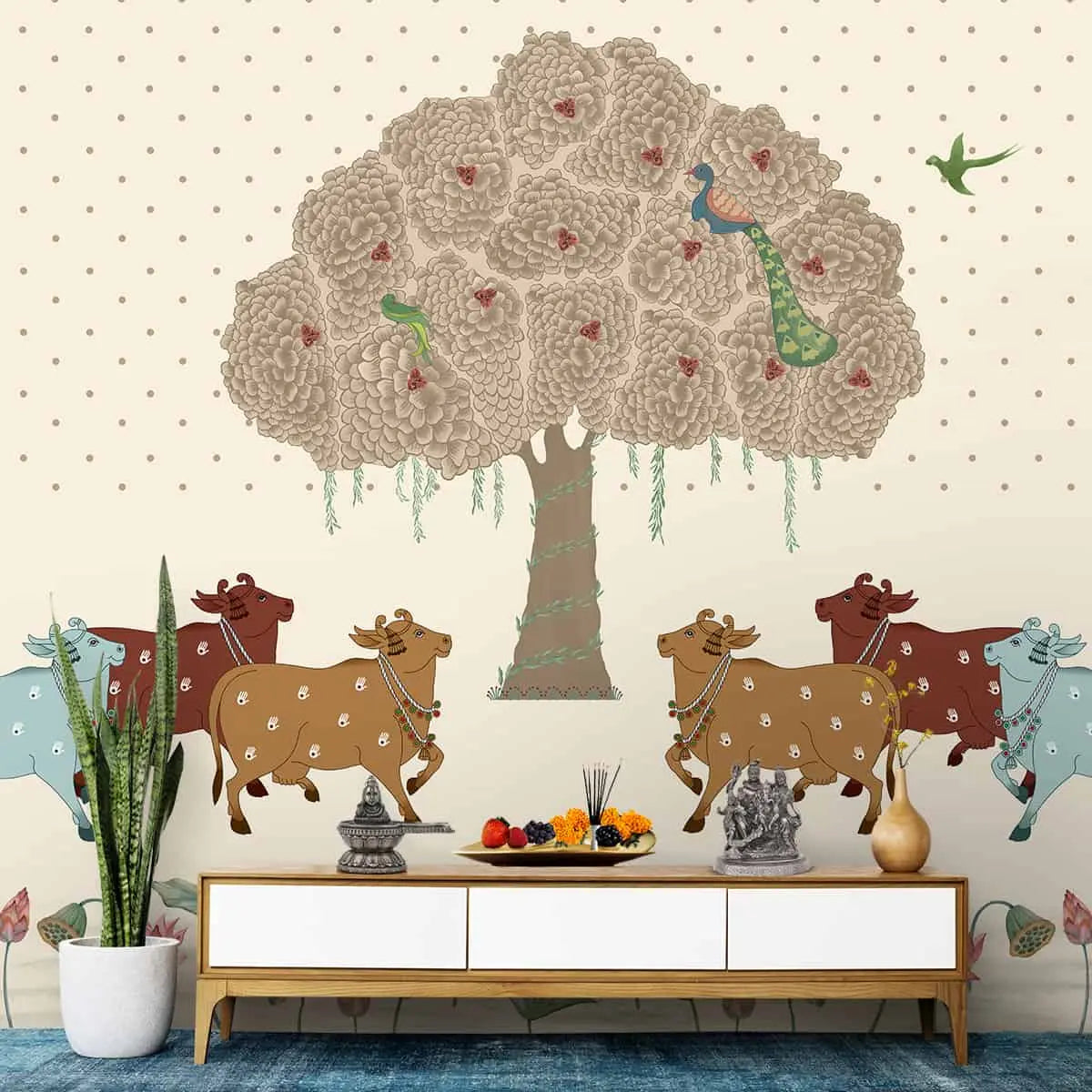 Sacred Grove Pichwai Pooja and Living Room Wallpaper