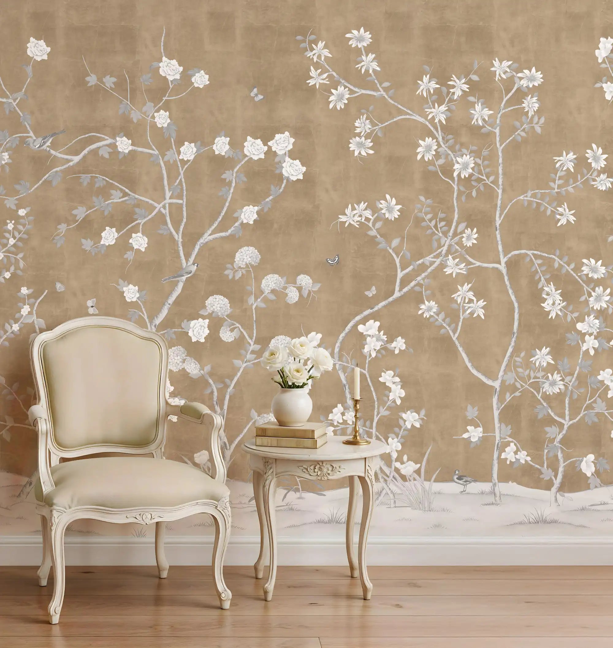 Radiant Contrast: Crisp white florals stand out beautifully against the warm Clay Beige.