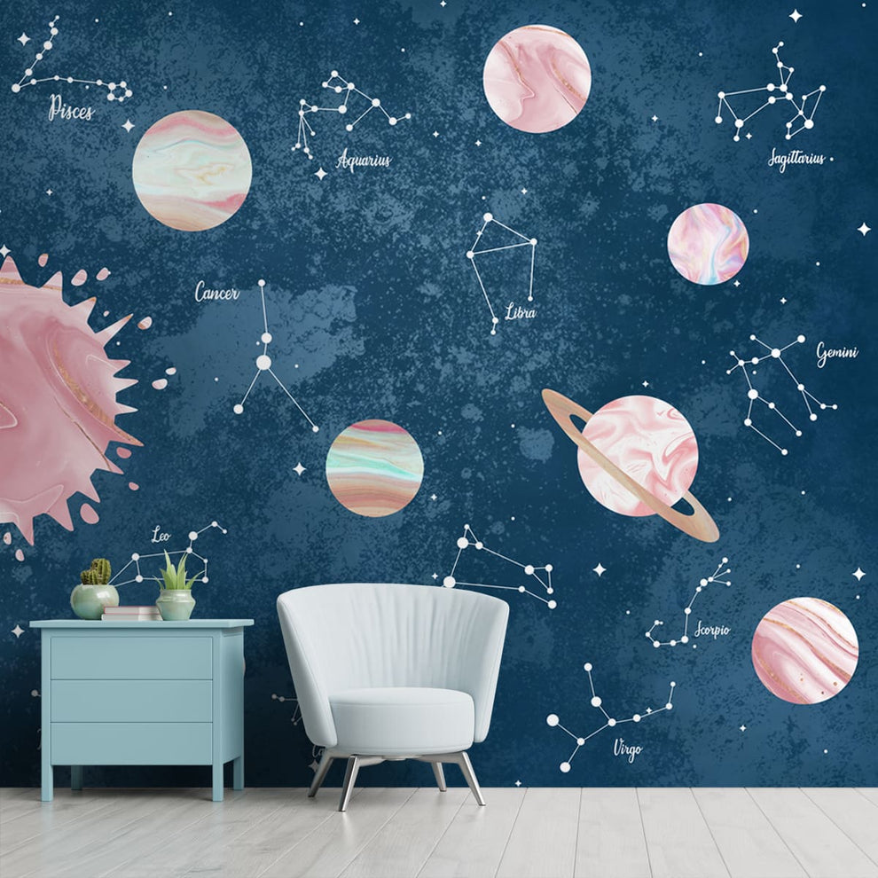 Solar System and Constellation, Wallpaper for Kids Bedrooms, Blue