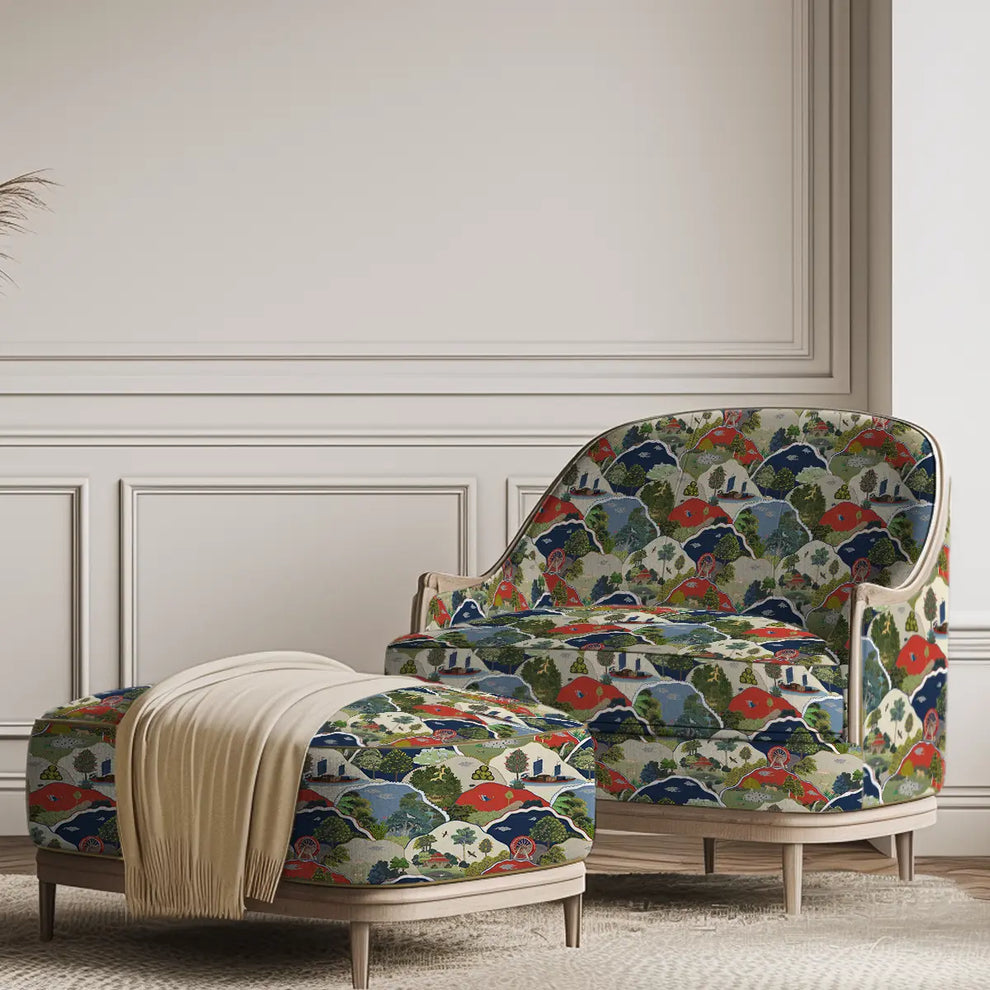 Product Details: Tales of Celestial Village Sofa and Chairs Upholstery Fabric Blue & Red