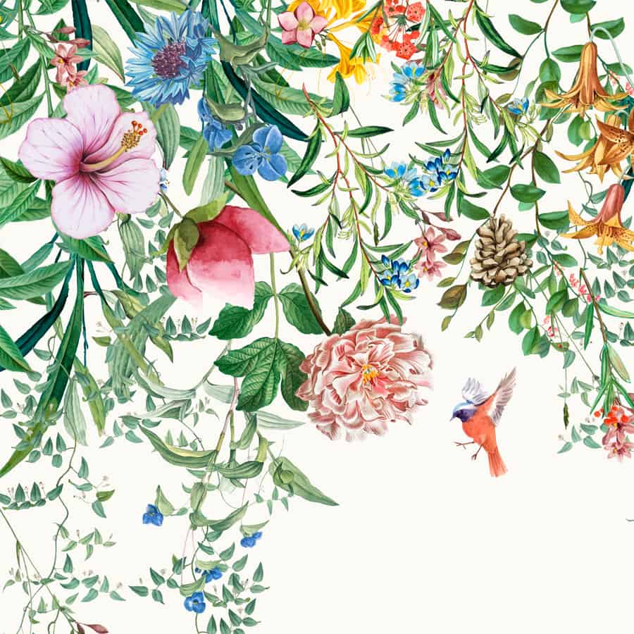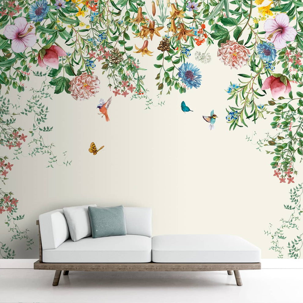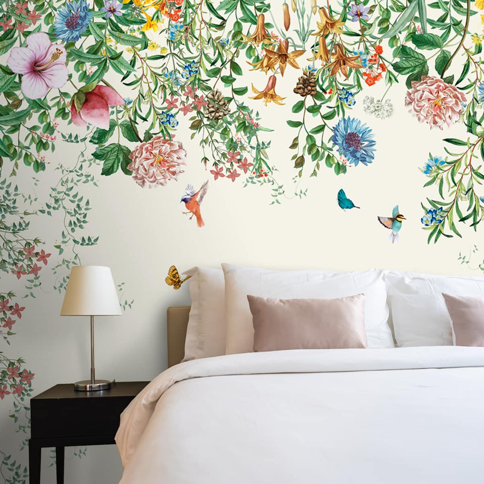 Unique Hanging Floral and Bird Wallpaper for Bedrooms | Custom made | Clear & vibrant prints | Easy to maintain | Lifencolors | Made in India