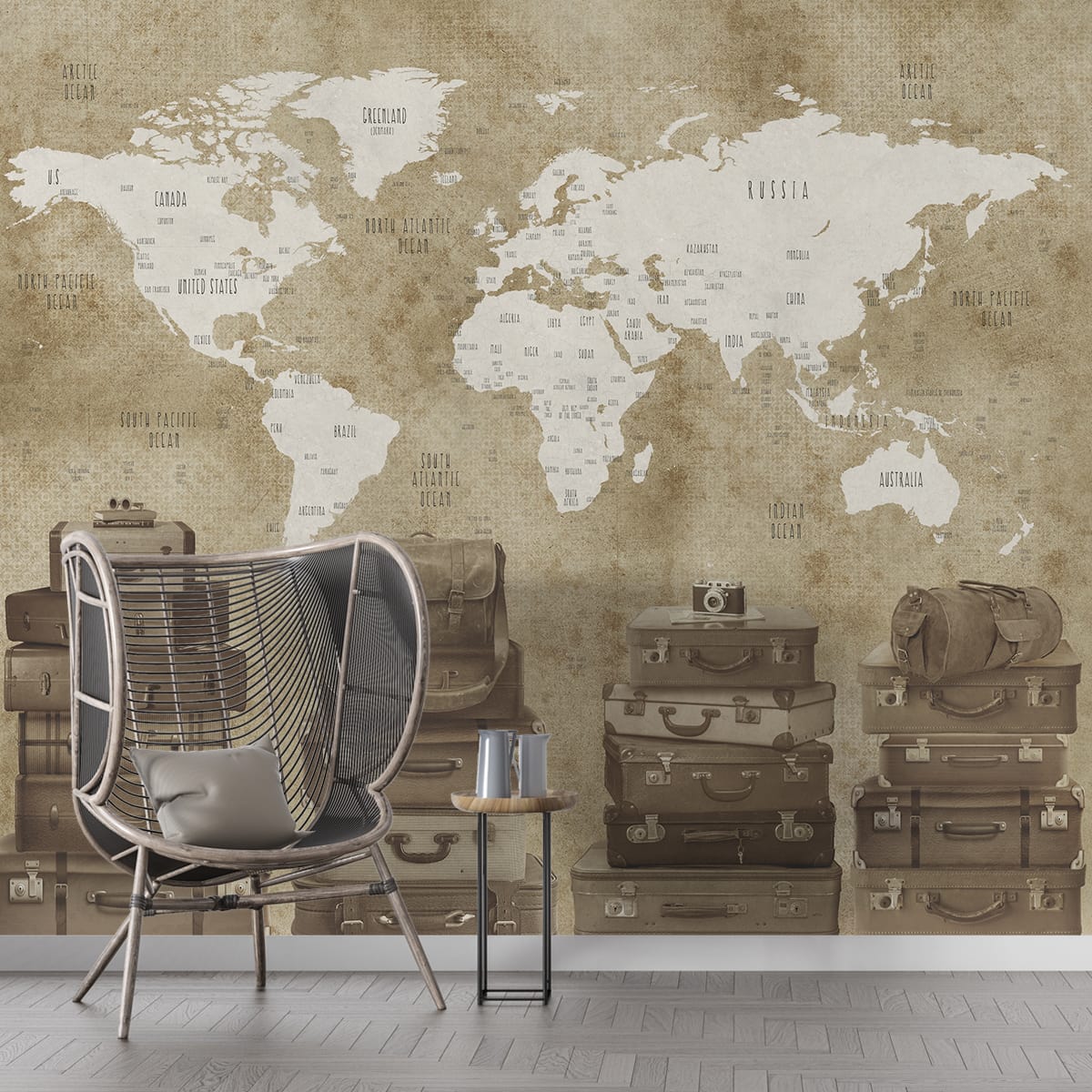Vintage Travel Theme World Map Customised Wallpaper for Walls